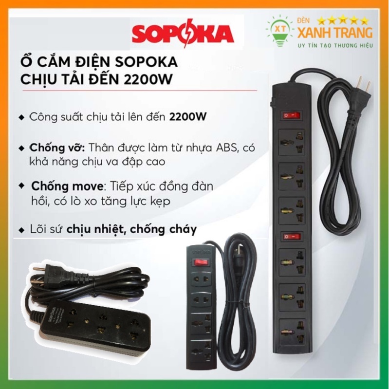 Thiết Bị Điện Gia Dụng > Mạch điện & Phụ tùng > Ổ cắm điện & Dây nối || Dây ổ cắm điện 3 lỗ, 4 lỗ đến 6 lỗ có công tắc an toàn chịu tải 1200W - 2200W SOPOKA (6A-250V)Còn hàng