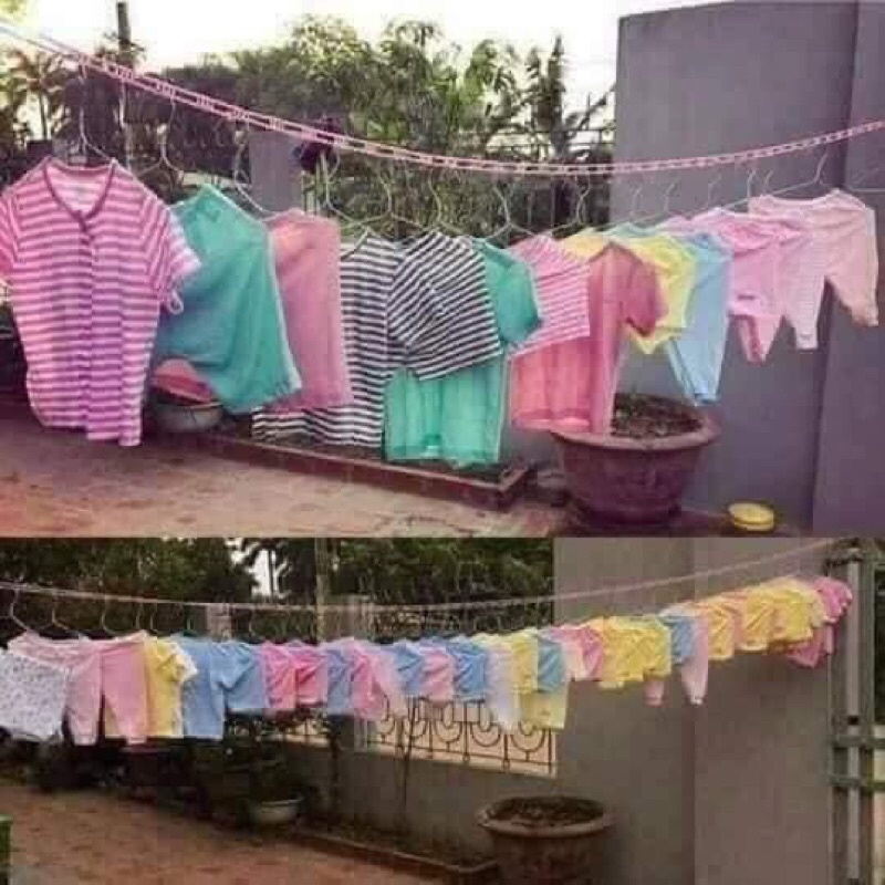 DÂY PHƠI ĐỒ THÔNG MINH- Dây phơi đồ thông minh 5m giúp cố định các móc quần áo khi phơi tránh bị gió thổi dồn gây ẩm ướt và lâu khô.