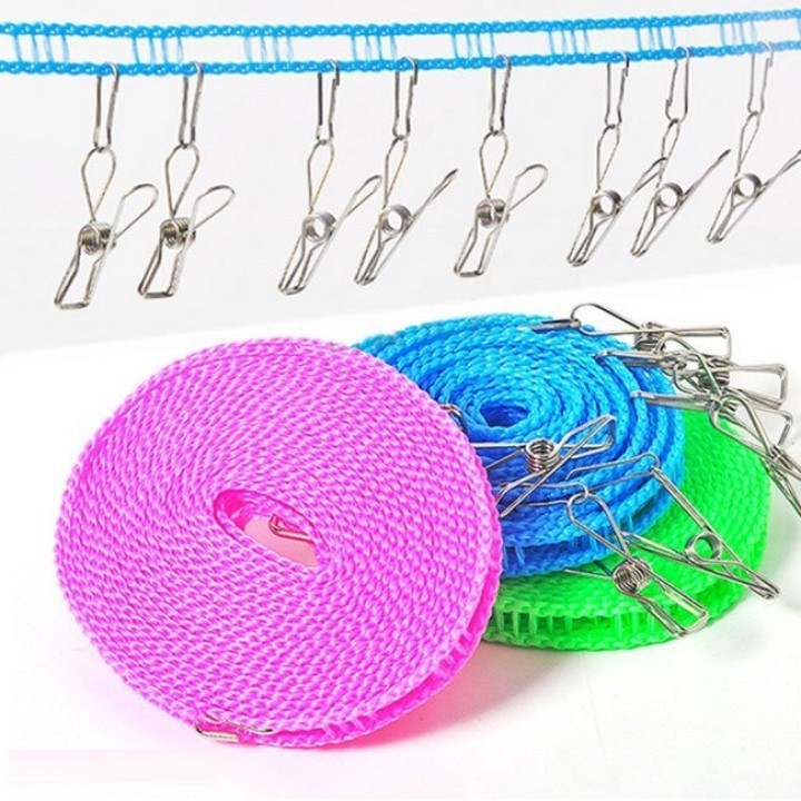 - Dây phơi quần áo thông minh giúp cố định các móc quần áo khi phơi tránh bị gió thổi dồn gây ẩm ướt và lâu khô.