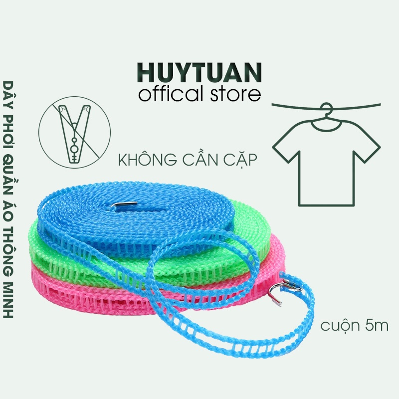Nhà cửa & Đời sống > Dụng cụ chăm sóc nhà cửa > Dây phơi & giá phơi quần áo || Dây phơi đồ thông minh dài 5m chống bay, không cần kẹpCòn hàng