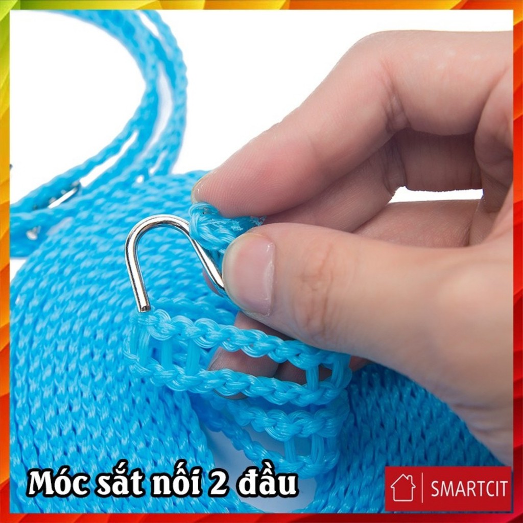 - Mỗi dây phơi đều có gắn 2 móc treo bằng inox giúp dễ dàng treo dây phơi.