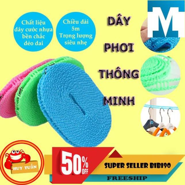 - Dây phơi quần áo thông minh giúp cố định các móc quần áo khi phơi tránh bị gió thổi dồn gây ẩm ướt và lâu khô.