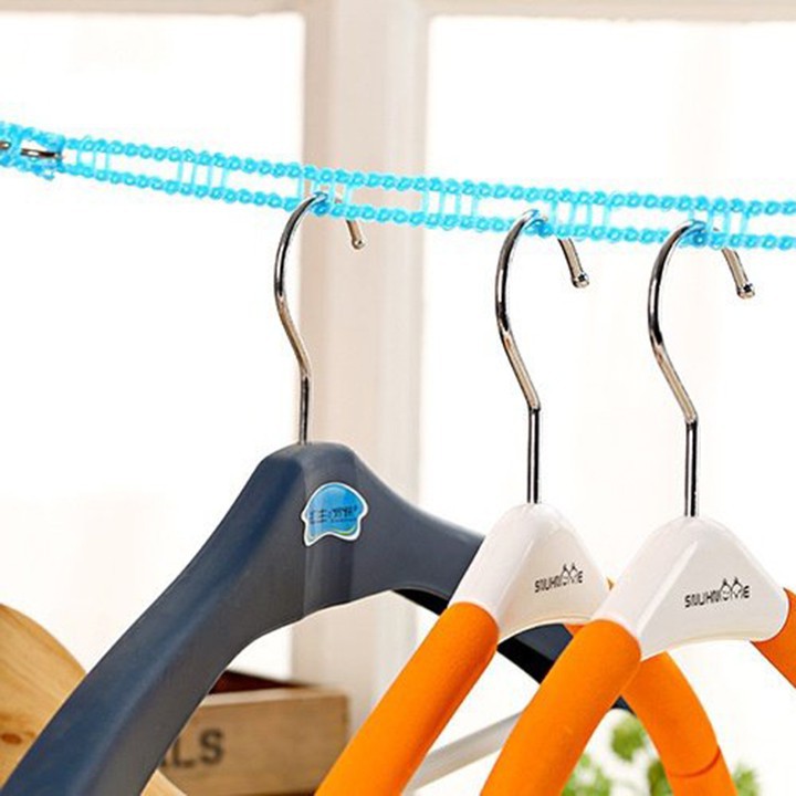 Dây phơi quần áo thông minh giúp cố định các móc quần áo khi phơi tránh bị gió thổi dồn gây ẩm ướt và lâu khô.