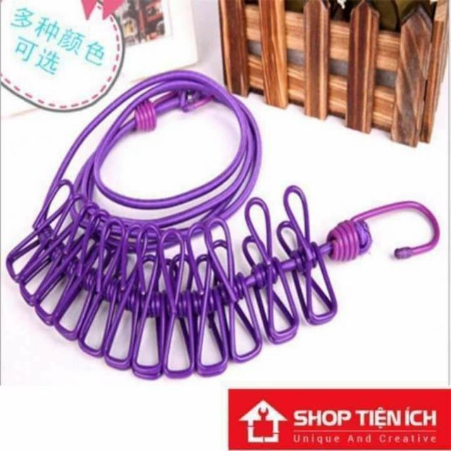 Dây phơi sắt có kẹp- Dây phơi đồ có kẹp inox thiết kế thông minh giúp phơi quần áo thuận tiện, giữ quần áo không bị rơi xuống đất hay bị gió thổi bay đi.