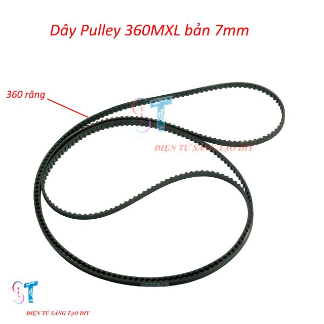 Dây pulley 360MXL chu vi 731.52mm bản 7mm hay dây pulley 360MXL là loại dây curoa cơ cấu truyền tải cho động cơ, làm máy mài, máy cắt mini, làm phụ kiện cho máy cưa tự chế, làm bộ truyền chuyển động. Được dùng để kết hợp với pulley để truyền động.- Dây đai răng MXL, chất liệu polyurethane hay còn gọi là PU có độ bền cao, chịu được áp lực tốt, chịu mài mòn tốt, không bám dính dầu mỡ...