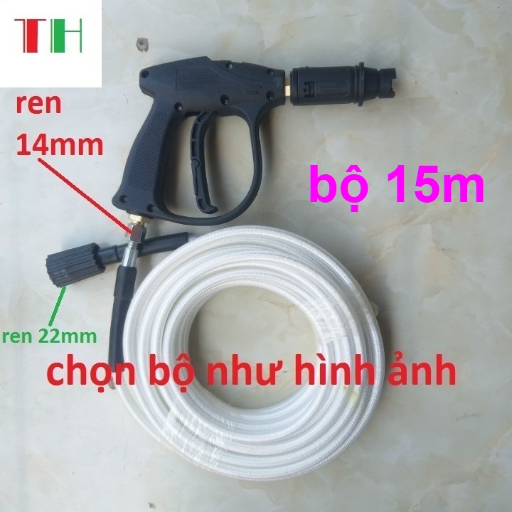 ống dây rửa xe dài 10m-15mét -20m , một đầu gen 14 mm và một đầu gien 22mm