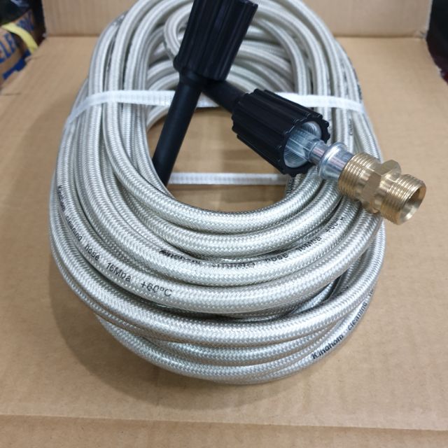 Dây rửa xe 10M áp lực cao 2 đầu to ren 22mm tặng kèm khớp ĐỒNG nối dây ren 22 . Dây xịt rửa áp lực cao 10M