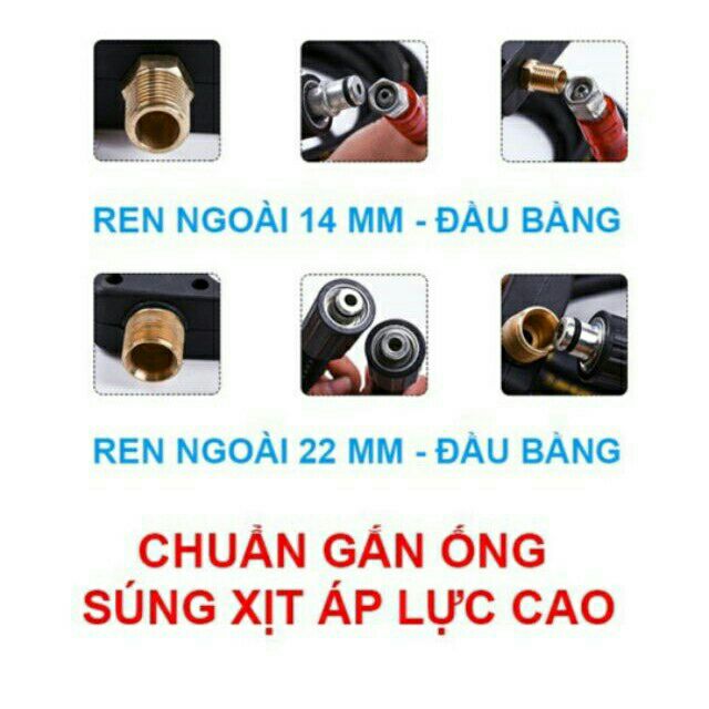 - Các đầu nối với ren vặn dễ dàng thao thác lắp đặt với máy bơm – xịt rửa cao áp