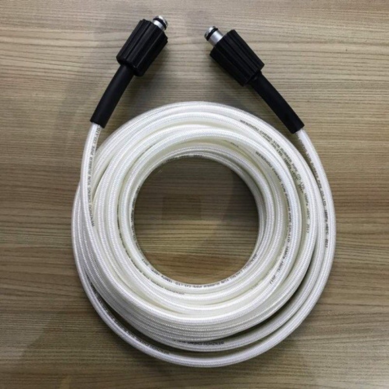 dây máy rửa xe cao áp với thiết kế bằng chất liệu cao cấp ống dây rửa xe cho bơm áp lực cao được sản xuất theo công nghệ USA và Hàn quốc sử dụng cùng với máy bơm xịt rủa xe áp lực cao để rửa xe ,rửa máy lạnh . Vệ sinh nhà cửa . Nhà hàng quán ăn ....... được làm từ 3 lớp nhựa PU dẻo dai bền Bỉ chịu được áp lực nước tốt cho khả năng chống xé rách chống trầy xước khả năng chịu mài mòn cao và không rạn gãy sau thời gian dài sử dụng