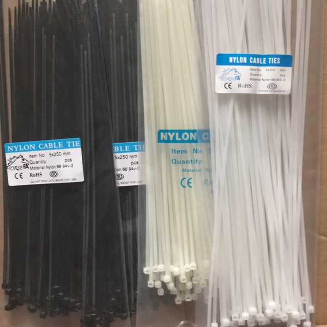 - Dây rút, dây thít nhựa có màu sắc: trắng/ đen