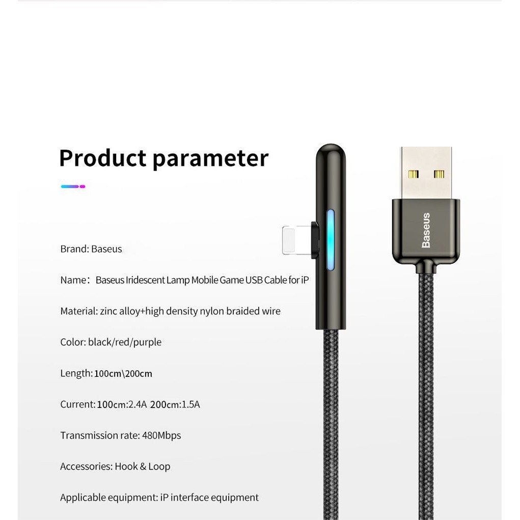 ☑️Tính năng cơ bản Cáp sạc và truyền dữ liệu siêu bền Baseus Iridescent Lamp Mobile Game cho iPhone/ iPad (2.4A, Fast Charging Lightning Game Cable)