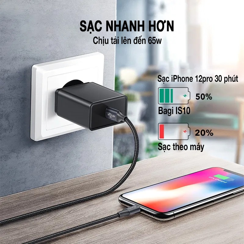 Điện Thoại & Phụ Kiện > Phụ kiện > Cáp, sạc & bộ chuyển đổi > Cáp & Bộ chuyển đổi di động || Dây sạc iPhone/ iPad Bagi CB-IS10 - Hàng chính hãng - iphone 5, 5s, 6, 6s, 7, 7 Plus, 8, 8 Plus X 12 promax 11 proCòn hàng