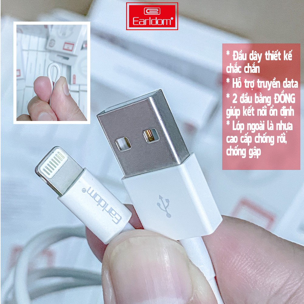 Dây sạc nhanh iphone lightning chính hãng Earldom EC025i dây bọc nhựa TPE cao cấp truyền tải dự liệu tốt
