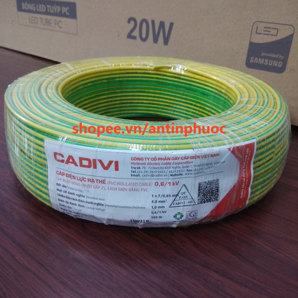 + Cadivi cv 4.0mm ( vàng- xanh ) /cuộn 100 mét