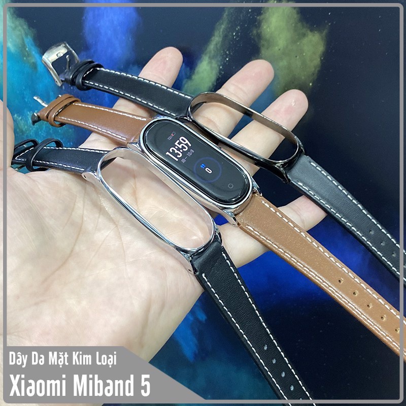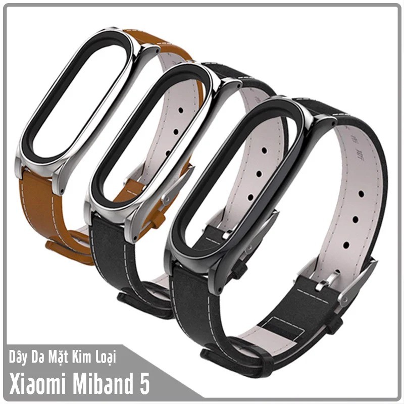 Dây thay thế cho Xiaomi Miband 5 Mijobs dây da mặt kim loại