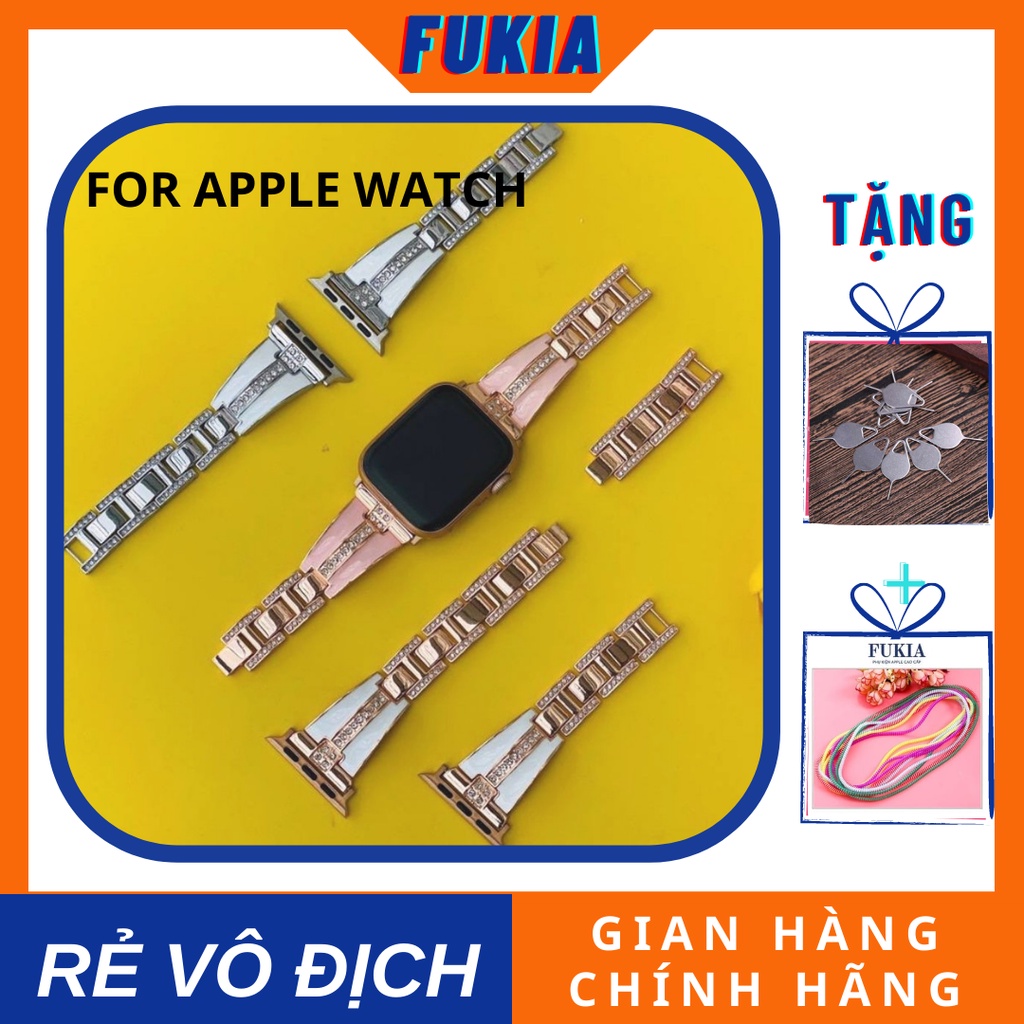 FUKIA cam kết: Dây thép rolex ruby dành cho Apple Watch đồng hồ thông minh Series 1/2/3/4/5/6/7/SE size 38/40/41/42/44/45mm