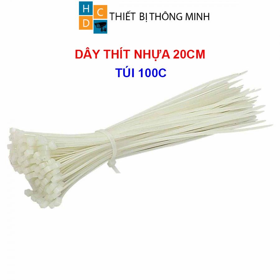 Dây thít nhựa 20cm bó 100c buộc dây điện dây camera, dây rút nhựa màu trắngĐộ dài: 20cm