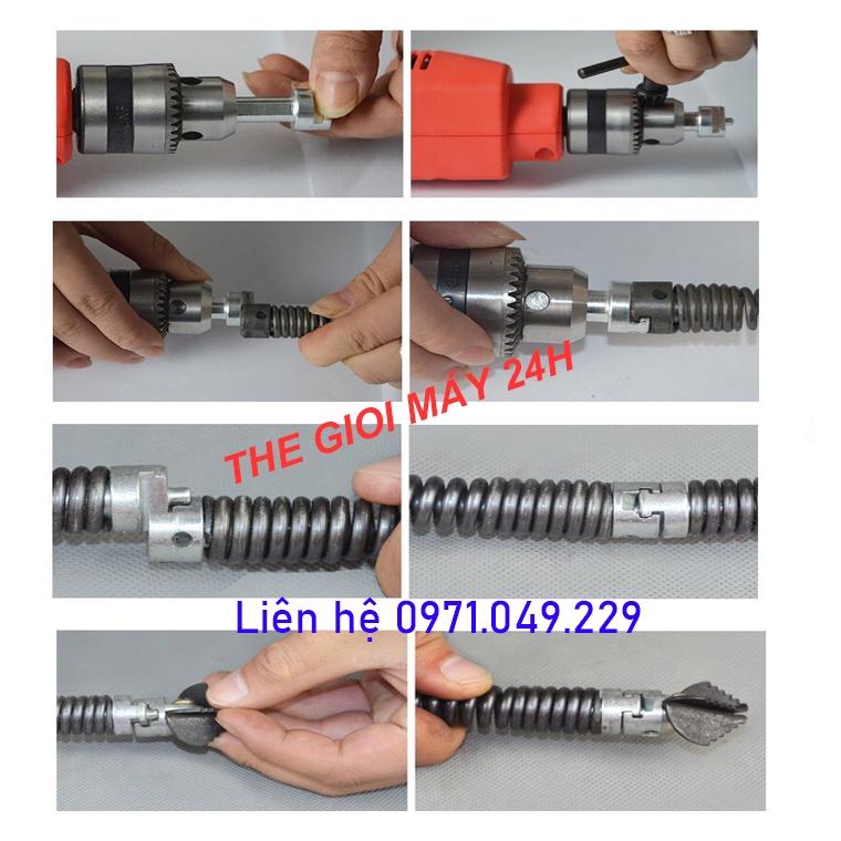 Giới thiệu Dây thông tắc cống dùng máy khoan dài 9m kèm 6 đầu thông + 1đầu kết nối máy khoan