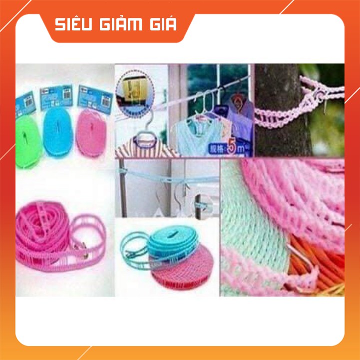 Khách hàng được hỗ trợ xem hàng trước khi nhận.+ Bộ sản phẩm bao gồm 01 dây phơi, có 3 màu mỗi dây dài 5 m, có thiết kế móc treo thuận tiện và các ô nhỏ cố định móc treo quần áo không bị xô.
