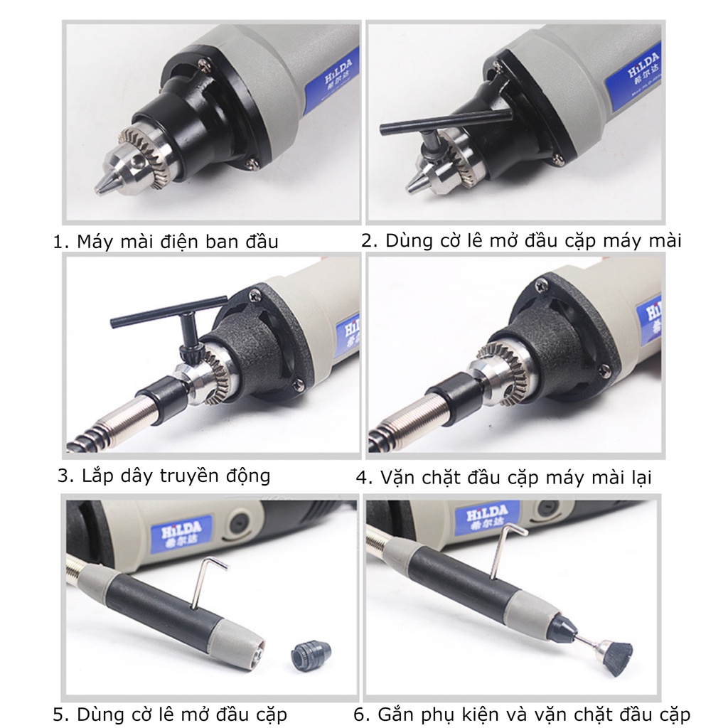 Giới thiệu Dây truyền động, dây nối dài cho máy khoan mài khắc mini 6mm (đầu to)