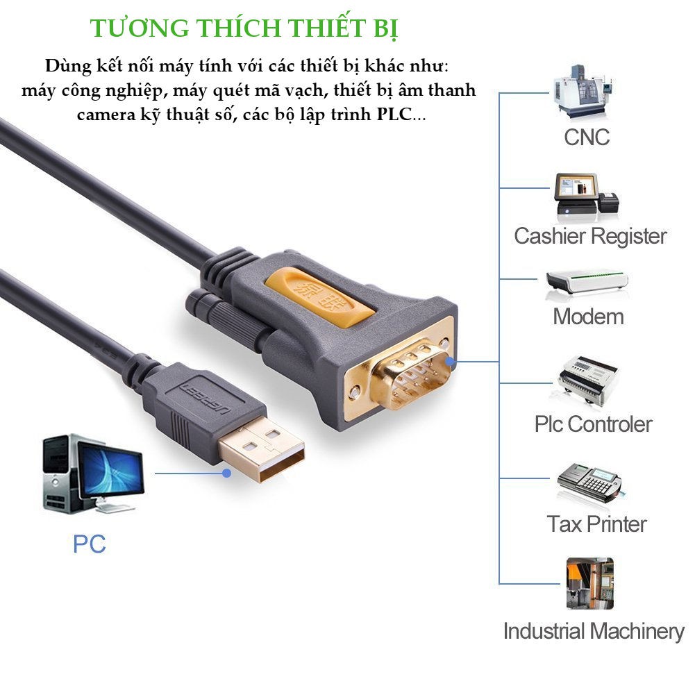 Máy tính & Laptop > Thiết Bị Lưu Trữ > USB & OTG || Dây USB 2.0 sang COM DB9 RS-232 chipset PL2303TA UGREEN CR104 - Hàng phân phối chính hãng - Bảo hành 18 thángCòn hàng