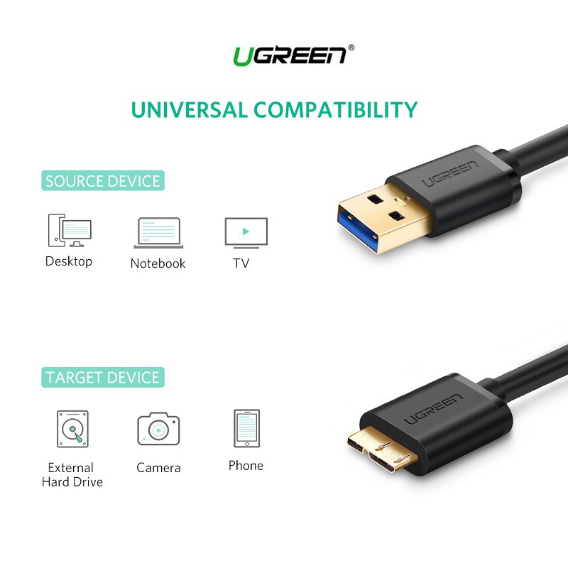 ◇ Cáp USB 3.0 to Micro B Ugreen tương thích với Samsung Galaxy S5, Galaxy Note 3, Galaxy Note Pro 12.2, và di động USB 3.0 ổ cứng bên ngoài bao gồm Toshiba Canvio, Seagate FreeAgent, và Western Digital (WD)