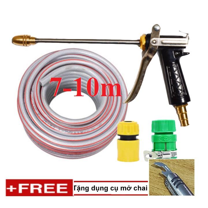 Bộ dây vòi xịt nước rửa xe, tưới cây . tăng áp 3 lần, loại 7m, 10m 206318 đầu đồng,cút,+ tặng mở chai