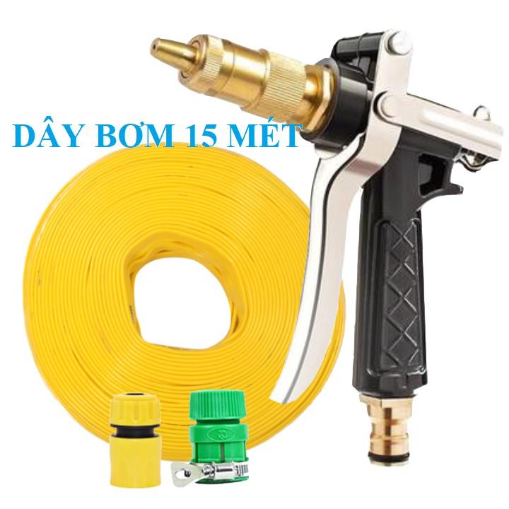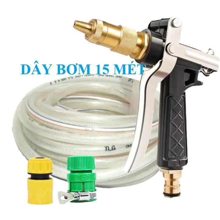 Bộ dây vòi xịt nước rửa xe, tưới cây . tăng áp 3 lần, loại 15m 206236 đầu đồng, cút, nối PE