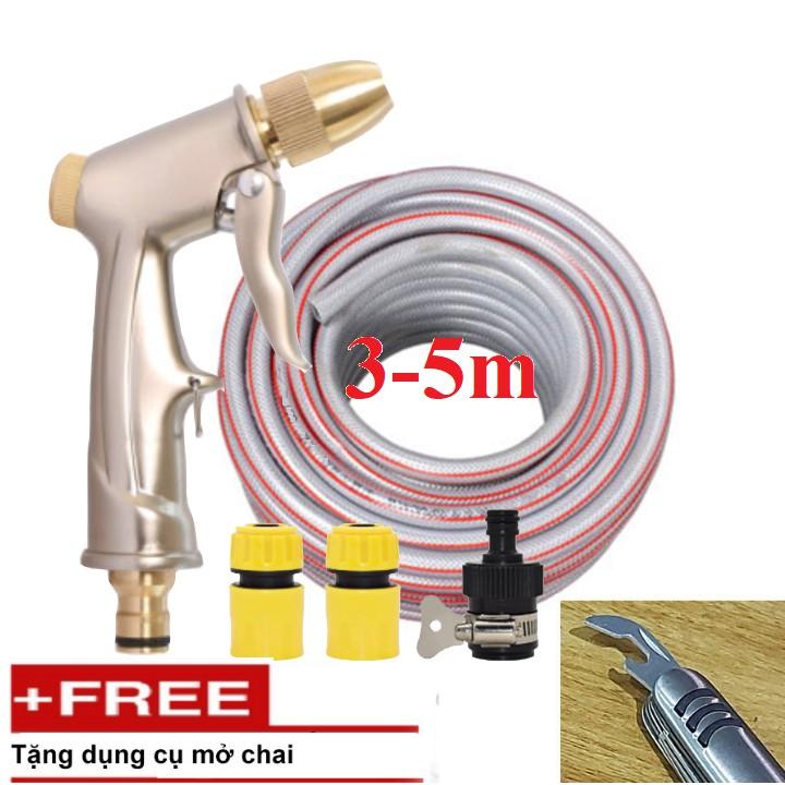Bộ dây vòi xịt nước rửa xe, tưới cây .tăng áp 3 lần,loại 3m,5m 206701-1đầu đồng,cút,nối nhựa đen+ tặng mở chai