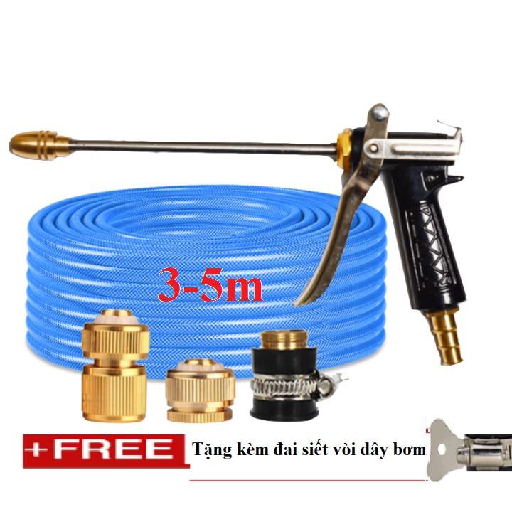 Bộ dây vòi xịt nước rửa xe, tưới cây . tăng áp 3 lần, loại 3m,5m 206318 đầu đồng,cút đồng+ tặng đai