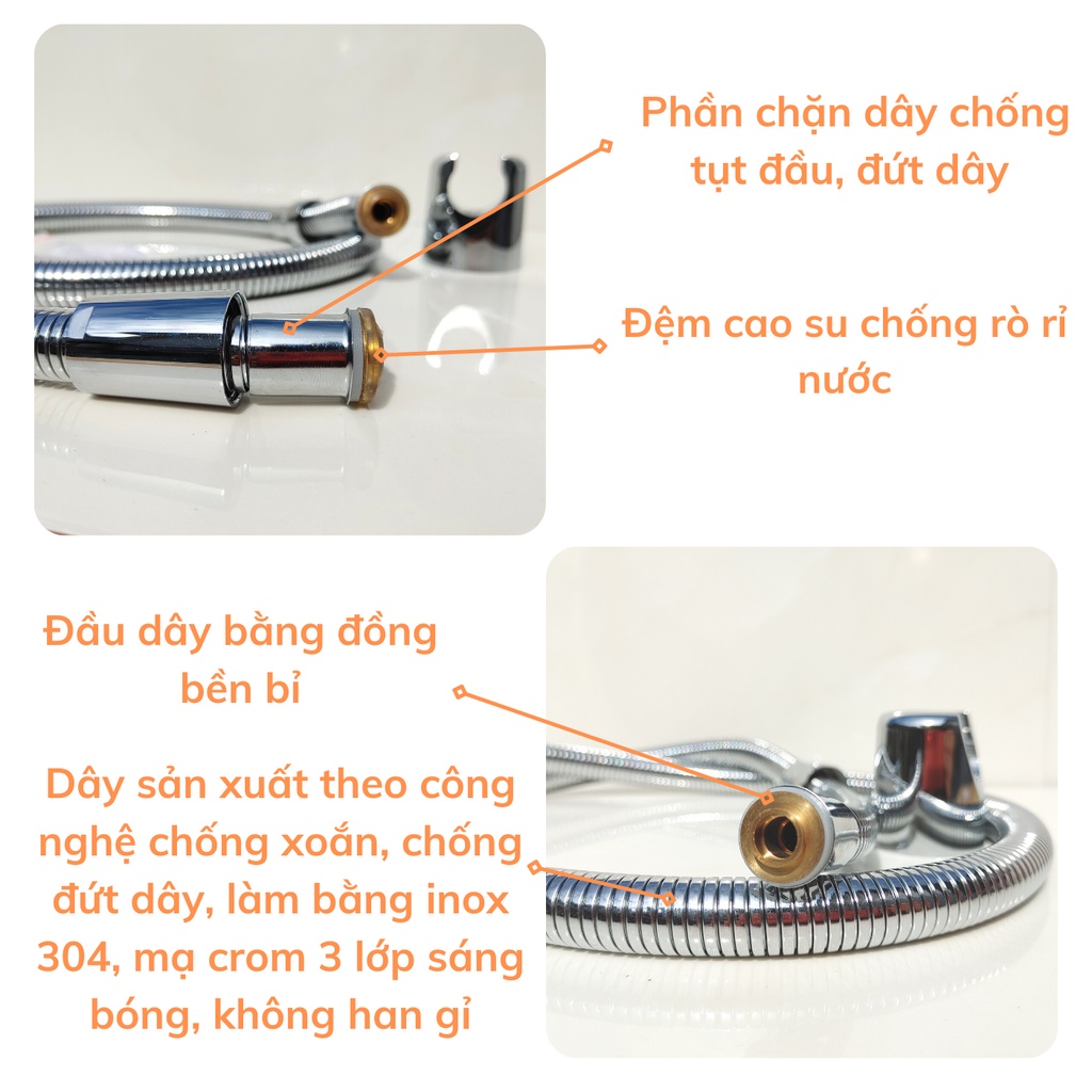 Thông tin sản phẩm: Dây vòi xịt vệ sinh inox 3 lớp- Chất liệu: Đồng, inox 304 mạ crom