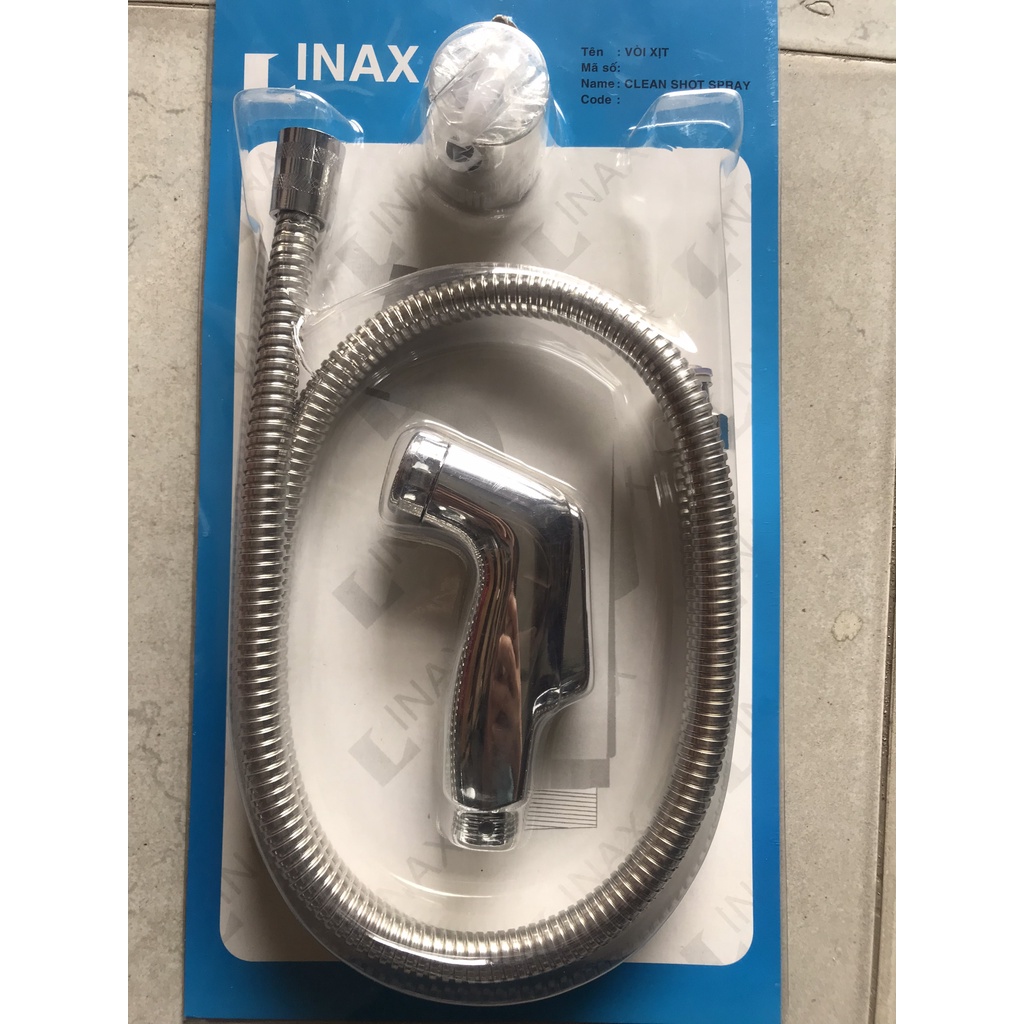 - Bộ vòi xịt INAX - Vòi xịt vệ sinh INAX bao gồm: 1 đầu vòi xịt, 1 dây dẫn nước, gác vòi, vít và ron lót