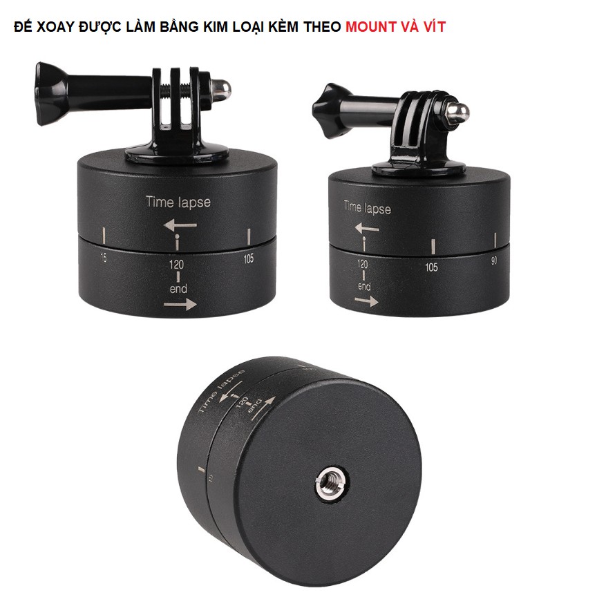 Đế gopro xoay 360 độ chụp time lapse 60 phút bằng kim loại có chuông báo