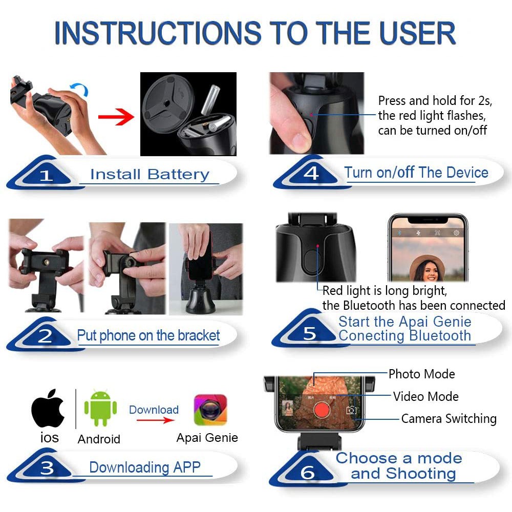 5. 【Chú ý đến chi tiết】: 1. Phải sử dụng giá đỡ điện thoại chụp ảnh thông minh theo dõi đối tượng 360 cùng với điện thoại thông minh. 2. Nên sử dụng cảnh đơn lẻ, với hiệu ứng theo dõi tốt nhất. 3 không di chuyển khuôn mặt / đối tượng quá nhanh 4 khu vực theo dõi hiện tại là khu vực hình vuông màu lục lam.