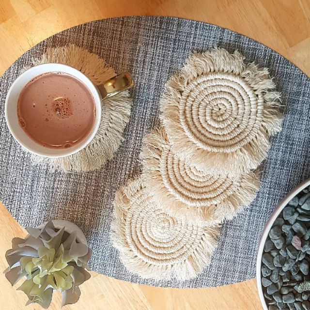 Nhà cửa & Đời sống > Bộ đồ bàn ăn > Khay, tấm lót bàn ăn || ĐẾ LÓT LY MACRAME TRÒN - HÀNG ĐẸP THỦ CÔNGCòn hàng