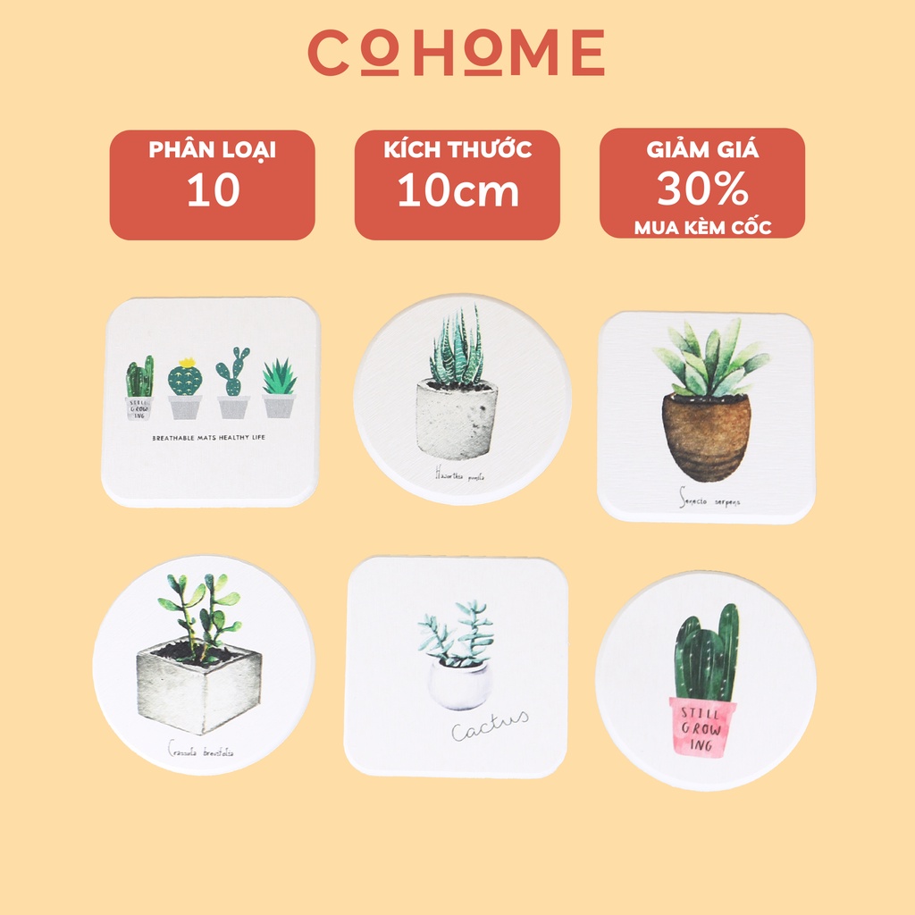 Đế lót ly thấm nước bằng gốm giữ nhiệt in hình cây cỏ bền đẹp, dễ dàng vệ sinh chống nấm mốc