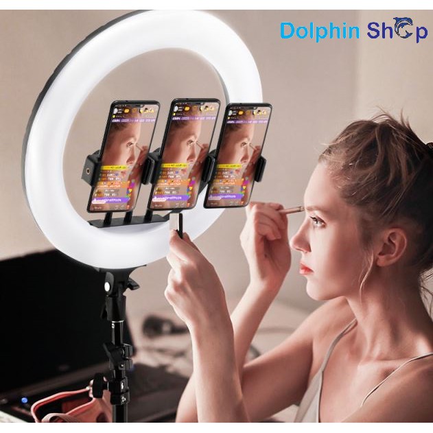 Điện Thoại & Phụ Kiện > Phụ kiện > Phụ kiện selfie > Giá đỡ || Đèn Livestream Size 45cm Kẹp 3 Điện Thoại và Có Điều Khiển Từ XaCòn hàng