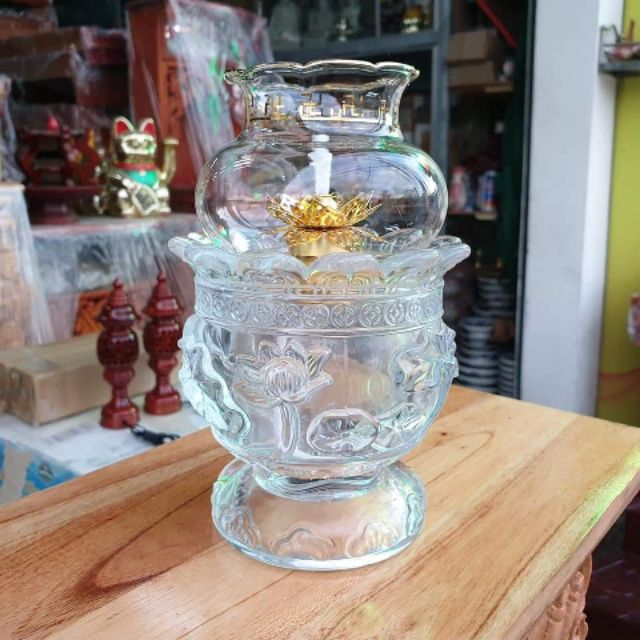 - Đèn thờ đốt dầu lưu ly cát tường- Thân làm bằng pha lê cao cấp