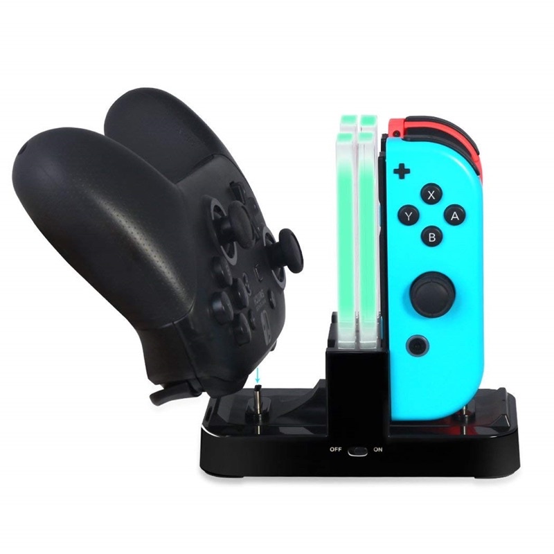 Đế này được thiết kế để sạc cho khuyết điểm Nintendo Switch Joy, với bốn đế sạc, đặt bộ điều khiển vào đế sạc khi sạc. Tiện lợi khi sạc, bạn chỉ cần đặt bộ điều khiển vào đế sạc khi sạc. Đế này sử dụng USB-5V để sạc, dễ dàng hơn cho việc sạc bộ điều khiển từ Nintendo Switch, PC, bộ chuyển đổi 5V khác. Khung sạc Nintendo này sẽ đặt tay cầm trò chơi Nintendo của bạn lên giá đỡ, giữ cho bộ điều khiển của bạn có trật tự và sẵn sàng để chơi, an toàn và tiện lợi. Nó cũng cho phép bạn tối đa hóa không gian làm việc của mình và giữ máy tính để bàn sạch sẽ và gọn gàng.Dock sạc Joy-Con cho Nintendo Switch, thiết kế sang trọng hiện đại.