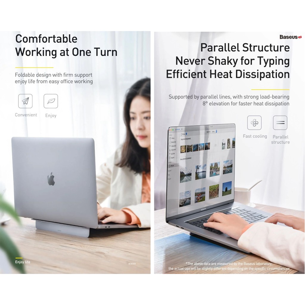 Đế tản nhiệt dạng xếp dán thân máy thương hiệu Baseus , name: Papery Notebook Holder-Chất liệu: hợp kim nhôm