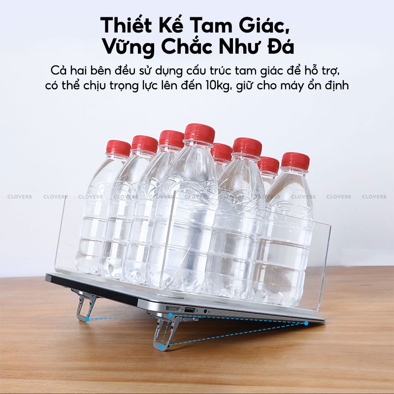 💻 Đế nâng sử dụng thiết kế tam giác để hỗ trợ máy, có thể chịu lực lên đến 10kg, giữ cho máy ổn định.