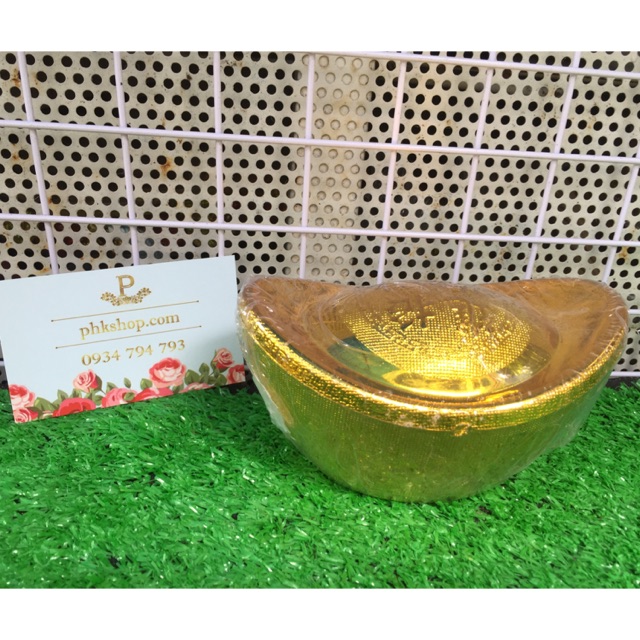 Nguyên phụ liệu cây kim tiền- đế thỏi vàng 12.5x5cmĐế nhựa xi vàng nguyên mẫu đusng chưng tết / hộp đựng/ đế cây tài lộc .....