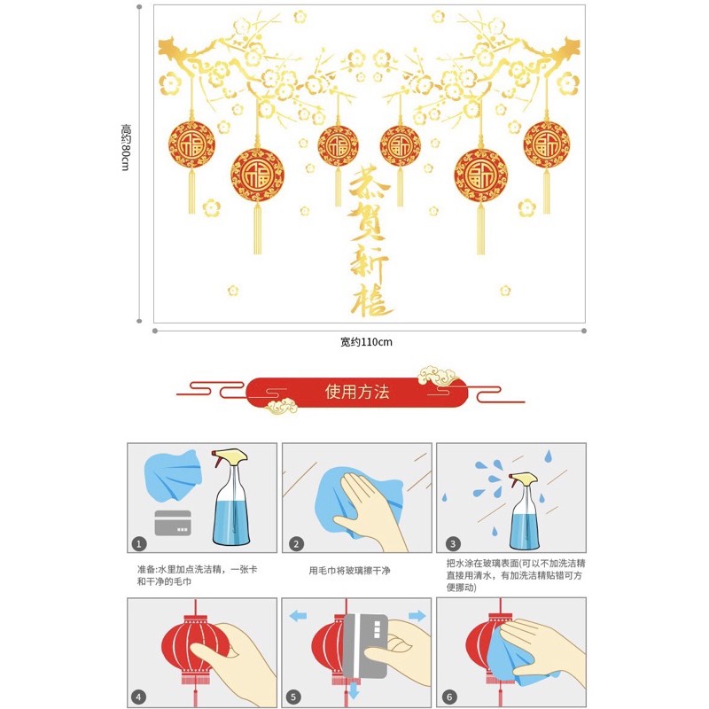 Giới thiệu Decal Tết HÍT TĨNH ĐIỆN không dơ kính - Cành Mai Vàng rèm dây hỷ đỏ