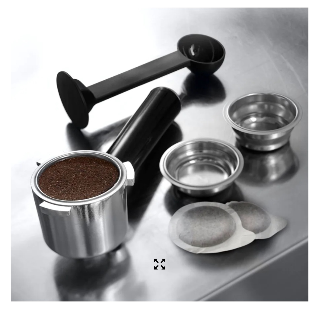 Máy có thể sử dụng cả cà phê bột (với phin lọc đơn hoặc đôi) hoặc cà phê túi lọc (E.S.E pod)