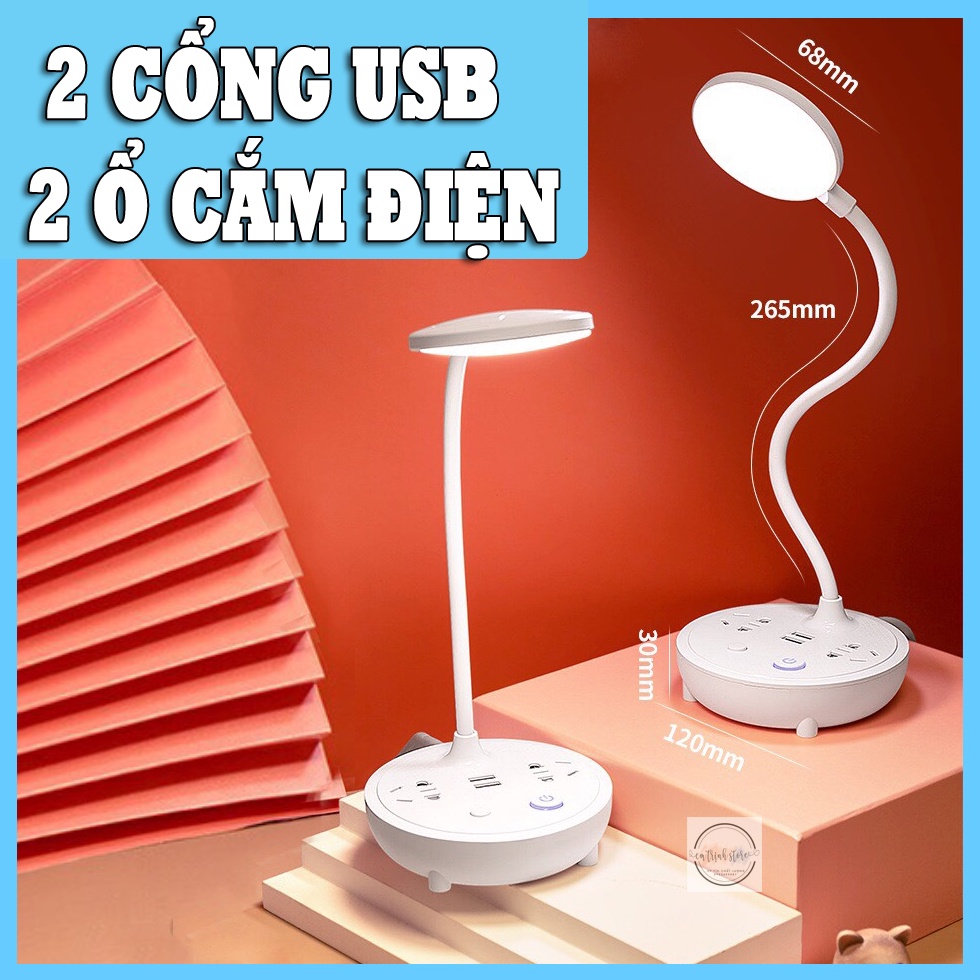 Đèn bàn học, đèn ngủ thông minh kết hợp ổ cắm điện và cổng USB