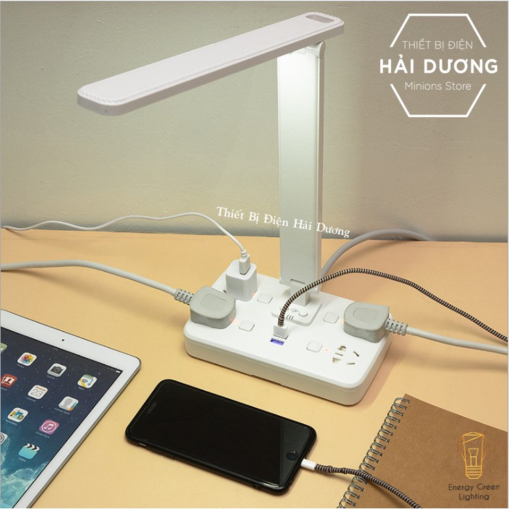 Loại Đèn Bàn LED Có Thể Gấp Gọn Tích Hợp 4 Ổ Cắm Điện - 2 Ổ USB