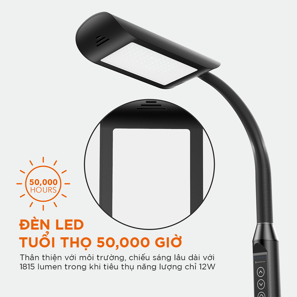 Đèn LED cho tuổi thọ 50.000 giờ: Có khả năng chiếu sáng lên đến 1815 lumen trong khi chỉ tiêu thụ 12W điện năng tạo ra ánh sáng đầy cảm hứng mà không sinh nhiệt.