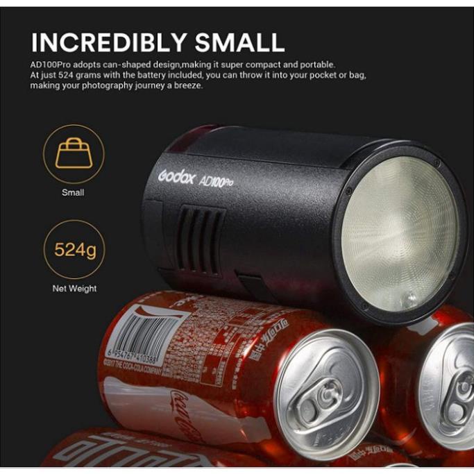 💥𝘾𝙖́𝙘 𝙩𝙞́𝙣𝙝 𝙣𝙖̆𝙣𝙜 𝙣𝙤̂̉𝙞 𝙗𝙖̣̂𝙩 𝙘𝙪̉𝙖 𝙨𝙖̉𝙣 𝙥𝙝𝙖̂̉𝙢:Đèn flash Godox AD100 Pro có kích thước nhỏ gọn, trọng lượng nhẹ dể dàng mang theo ngoài trời. Godox AD100 Pro được thiết kế tích hợp nhiều tính năng TTL, M, Multi, có thể sử dụng cho đa dạng dòng máy Canon, Nikon, Sony, Fujifilm, Olympus, Panasonic. Với thiết kế nhỏ gọn kết hợp hàng loạt ưu điểm sẵn có của dòng AD Pro mà hầu hết mọi nhiếp ảnh gia đều tin tưởng lựa chọn phục vụ cho chụp cưới, chụp sản phẩm, Lookbook , chụp thời trang…