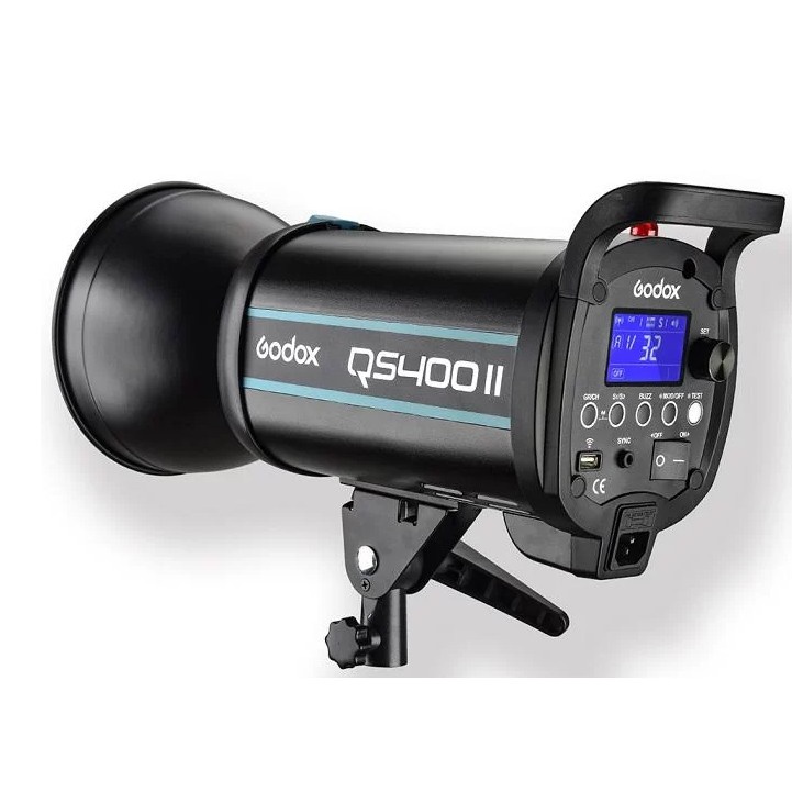 Ngoài ra QS400II của Godox có giá đỡ phụ kiện Bowens phía trước cho phép nó sử dụng bộ điều chỉnh Godox cũng như các phụ kiện từ nhiều nhà sản xuất sử dụng hệ thống này. Đầu có giá đỡ nghiêng và chạy bằng nguồn điện chính từ 100 đến 120 VAC.