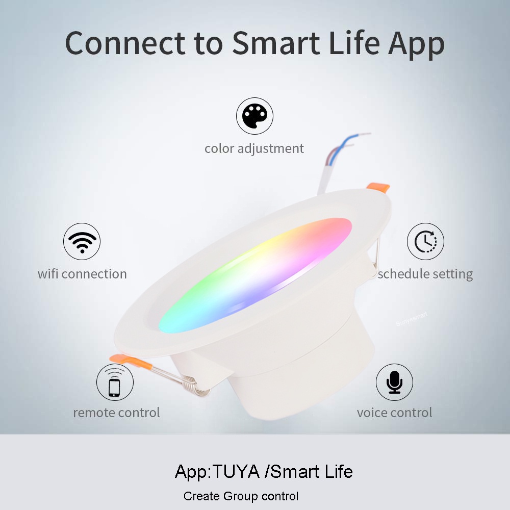 Nhà cửa & Đời sống > Trang trí nhà cửa > Khác || Đèn LED Downlight âm trần thông minh 16 triệu màu Tuya Bluetooth MESH RGB + C+ W 7W-9W-12-18W - SmartlifeCòn hàng